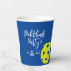 Retro Style Neon Blue Themed Pickleball Birthday Paper Cups