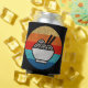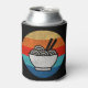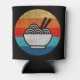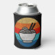 Retro style ramen illustration with noodles and chopsticks on a colourful retro style sunset background in yellow, orange, red, turquoise and blue colours