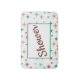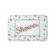 Step out of the shower in style with this fun bathmat that features a trendy retro-style stars pattern in shades of aqua, yellow, and brown accented with customizable text that says, "Shower." Modify the text with your own sentiment to create a one-of-a-kind gift for new homeowners, a unique accessory for your own home, or a fun addition to a dorm room shower.