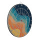 Retro style waves geometrical pattern illustration with yellow, orange, blue, navy blue and turquoise stripes decoration