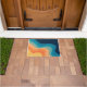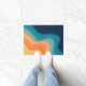 Retro style waves geometrical pattern illustration with yellow, orange, blue, navy blue and turquoise stripes decoration