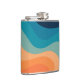 Retro style waves geometrical pattern illustration with yellow, orange, blue, navy blue and turquoise stripes decoration