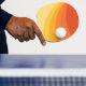 Abstract illustration of yellow and orange sun rays with curvy geometric stripes decoration for everybody who likes retro style design and retro style colour palette.