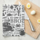 Retro Styled Typographic Barbecue Pattern Tea Towel