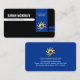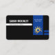 At the upper left corner lies your prestigious name and job title. Sitting inside the blue vertical piece is a gold "tire rim-spokes" logo you can use with your business name at the top.