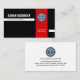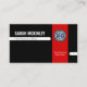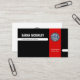 At the upper left corner is your prestigious name and job title. Sitting inside the red vertical piece is a global logo you can use with your business name at the base of the card.