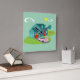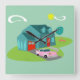 This Retro Suburban House Acrylic Wall Clock pattern features a typical American home in a typical American neighbourhood, circa 1950. A teal home with a peacock blue roof, and turquoise windows are perfectly offset by a vibrant red front door and garage door. A classic pink, 1950’s finned convertible car is parked on the picturesque driveway. Kitschy, plastic, pink flamingos look right at home on the boomerang shape of freshly mowed green grass resting on a jade background. The manicured lawn is landscaped with whimsical trees. Kidney bean shaped clouds and a yellow sunburst of a sun let you know it’s just another glorious day in mid century modern suburbia.