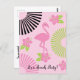 A retro themed summer beach party or cocktail party postcard with an original illustration of a pink flamingo and hibiscus flowers. At the heart of this postcard is a vibrant pink flamingo. With its whimsical retro flair, the flamingo instantly conjures up images of classic beach parties and endless fun under the sun. Beneath the flamingo, you'll find lush pink hibiscus flowers, beautifully accentuating the tropical charm of the scene. Customise the back of this postcard with all the party details.