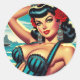 Retro Summer Beach Pin-up Classic Round Sticker