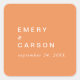 These retro summer orange wedding envelope seals are perfect for a colourful wedding. The unique modern vintage design features vibrant bold citrus orange and white typography with fun and funky vibes. Personalise the label with the names of the bride and groom.