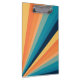 Retro style sun rays geometric pattern illustration with yellow, orange, blue and turquoise stripes decoration
