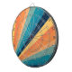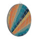 Retro style sun rays geometric pattern illustration with yellow, orange, blue and turquoise stripes decoration
