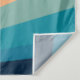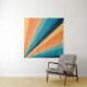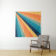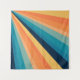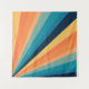 Retro style sun rays geometric pattern illustration with yellow, orange, blue and turquoise stripes decoration