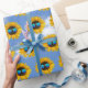 Retro sunglasses on yellow sunflowers with a blue summer sky background.