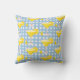 Retro Sunny Yellow Lemon Drop Blue White Check Cushion