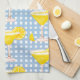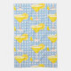 Retro Sunny Yellow Lemon Drop Blue White Check Tea Towel