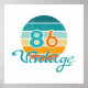 Retro vintage style sunset with 86 (1986) typography center in the style of the 1980s and Vintage in a scripted typographic design below in a distressed effect.