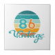 Retro vintage style sunset with 86 (1986) typography center in the style of the 1980s and Vintage in a scripted typographic design below in a distressed effect.
