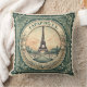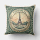 Retro Sunset French Eifel Tower Paris France Green Cushion
