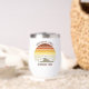 This cool orange vintage sunset over rocky mountains in nature makes a great image on a cute retro wine tumbler for an outdoor family reunion party favour. Complete your mountain vacation with a fun keepsake gift with your own last name and the year.