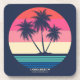 This beach design features the silhouette of palm trees against a bright retro sunset and the text, "Long Beach, California."