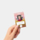 This eye-catching badge design features warm horizontal stripes in sunset shades of pink, orange, and brown, with space for a photo, name, title, and logo. Ideal for events, conferences, or office wear, it combines personality and professionalism in one bold, stylish layout.