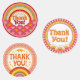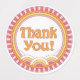Add a touch of warmth and charm to your packaging or correspondence with this retro-inspired "Thank You" sticker sheet. Featuring circular stickers in a vibrant pink and orange colour palette, each design combines a bold "Thank You" message with artistic, sunset-like gradients and intricate patterns. Perfect for sealing envelopes, decorating gifts, or enhancing small business packaging with a thoughtful and cheerful touch. These stickers are versatile and ideal for weddings, parties, or any occasion where gratitude shines!
