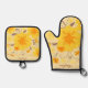 Retro Sunshine Floral Pattern-Yellow Flowers Oven Mitt & Pot Holder Set