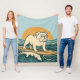 This sunny throw blanket is the perfect soft and cozy addition to your beach home decor. The retro-inspired surf art features a too-cool bulldog who rides an endless wave in front of the golden sun. Designed with old-school California energy, the distressed look gives it an authentic feel, like it was pulled straight from a vintage surf shop. | Matching throw pillow available in store.