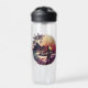 This water bottle is perfect for a surfer. It is in a retro style featuring a beach scene at sunset of a surfer with surfboard in the foreground. The text on the surfboard is customisable with your own, a name or can be left as is.