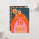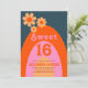 Sweet 16, celebrate her sixteenth birthday with this cool retro 60s 70s vintage colours navy blue orange pink and yellow hues rainbow arch 16th birthday party invitation. With simple daisy design and easy to use templates this custom invite sets the seen for a cool groovy hippie girls party. Original artwork by artist Catherine Sweetman