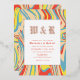 Fusion of retro and modern designs featuring swirl marble abstract pattern with old English font rose golden foil monogram personalised wedding invitation. Orange, yellow blue and pink colour palette wedding invite with swirl marble pattern background. This card is easily editable. If you need help with the customisation of this product or you need more matching products for this collection kindly message me via Zazzle.