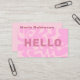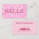 Hello in a bold font in lavender pink, on an asymmetric abstract design in pale pink and lilac.