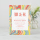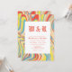 Fusion of retro and modern designs featuring swirl marble abstract pattern with old English font monogram personalised wedding invitation. Orange, yellow blue and pink colour palette wedding invite with swirl marble pattern background. This card is easily editable. If you need help with the customisation of this product or you need more matching products for this collection kindly message me via Zazzle.