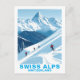 Retro Swiss Alps Skiing, Switzerland Travel Postcard