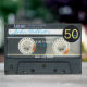 Old half-transparent audiotape (audio cassette - model n°6) to personalise with your name and date. 50 is customisable on a small black tag. Customisable 50th birthday guest book. Other models with other audiotapes and videotapes are available. Matching Birthday invitation.