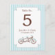 Retro Tandem Bicycle Blue & White Striped Wedding Postcard