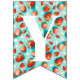 Looking for berry first birthday decor? Look at our Retro Teal Floral Strawberry Berry First Birthday Bunting Flags! It features a blue-teal background adorned with vibrant strawberries and white flowers, creating a fun retro vibe for your celebration. Perfect for a strawberry themed 1st birthday party, setting the tone for a joyful and colourful day. Beautiful strawberry theme birthday decorations!