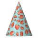Looking for strawberry theme first birthday party hats? Look at our Retro Teal Floral Strawberry Berry First Birthday Party Hat! It features a blue-teal background adorned with vibrant strawberries and white flowers, creating a fun retro vibe for your celebration. Perfect for a strawberry themed 1st birthday party, setting the tone for a joyful and colourful day. Beautiful strawberry theme birthday decorations!