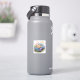 This heartwarming watercolor design features a retro two-tone pickup truck in teal blue and soft purple, driving away into a sunny spring day. The truck bed is overflowing with giant, colorful Easter eggs and blooming pink flowers, capturing the pure joy of the holiday.