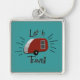 The retro design on this key chain is reminiscent of the print advertisements from the 50’s and early 60’s with a teardrop camper in vintage red and silver and the phrase “Let’s travel!” From my original digitally created image.