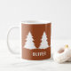 Retro Terracotta Christmas Modern Minimal Unique personalised family holiday mug design With modern hand drawn text and trees.
