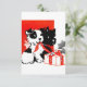 Circa 1930 artwork depicting a black and white pair of Scottish Terriers and a Christmas gift.