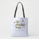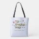 The power of a praying grandma is powerful and can move mountains! This groovy retro tote bag is for cool grandmothers who are not ashamed of the gospel of Jesus Christ! The message says "This Grandma Prays" and has simple pink and blue flowers on a light blue background and is personalised with the names of her grandchildren.