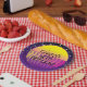 Retro Throwback to 80's Purple Yellow Sun Party Paper Plate