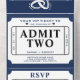 Retro Ticket Stub Admit Two White & Blue Wedding All In One Invitation