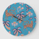 Vintage retro colour tiger, palm tree, flower seamless repeat pattern with blue background
