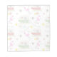 This product features a pattern which incorporates illustrations of retro vintage inspired camper trailers, pink flamingos, bees, and flowers.