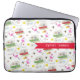 An electronics bag featuring illustrations of vintage campers, pink flamingos, flowers, and bees. Personalise with your name on front.