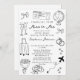 Retro Travelling from Miss to Mrs Bridal Shower Invitation - A whimsical, vintage inspired hand drawn and handwritten font bridal shower invitation template. Featuring, funky, hand drawn illustrations of a boarding pass, globe, clinking champagne flutes toast, luggage, engagement rings, an aeroplane with heart accent, a bouquet of flowers and a camera. Perfect for the bride planning a destination wedding, travelling honeymoon or who loves to travel and adventure. Edit with your all event details. This bridal shower invitation template is available in both print and digital download, an eco-friendly alternative that can be sent via email, text or social media.